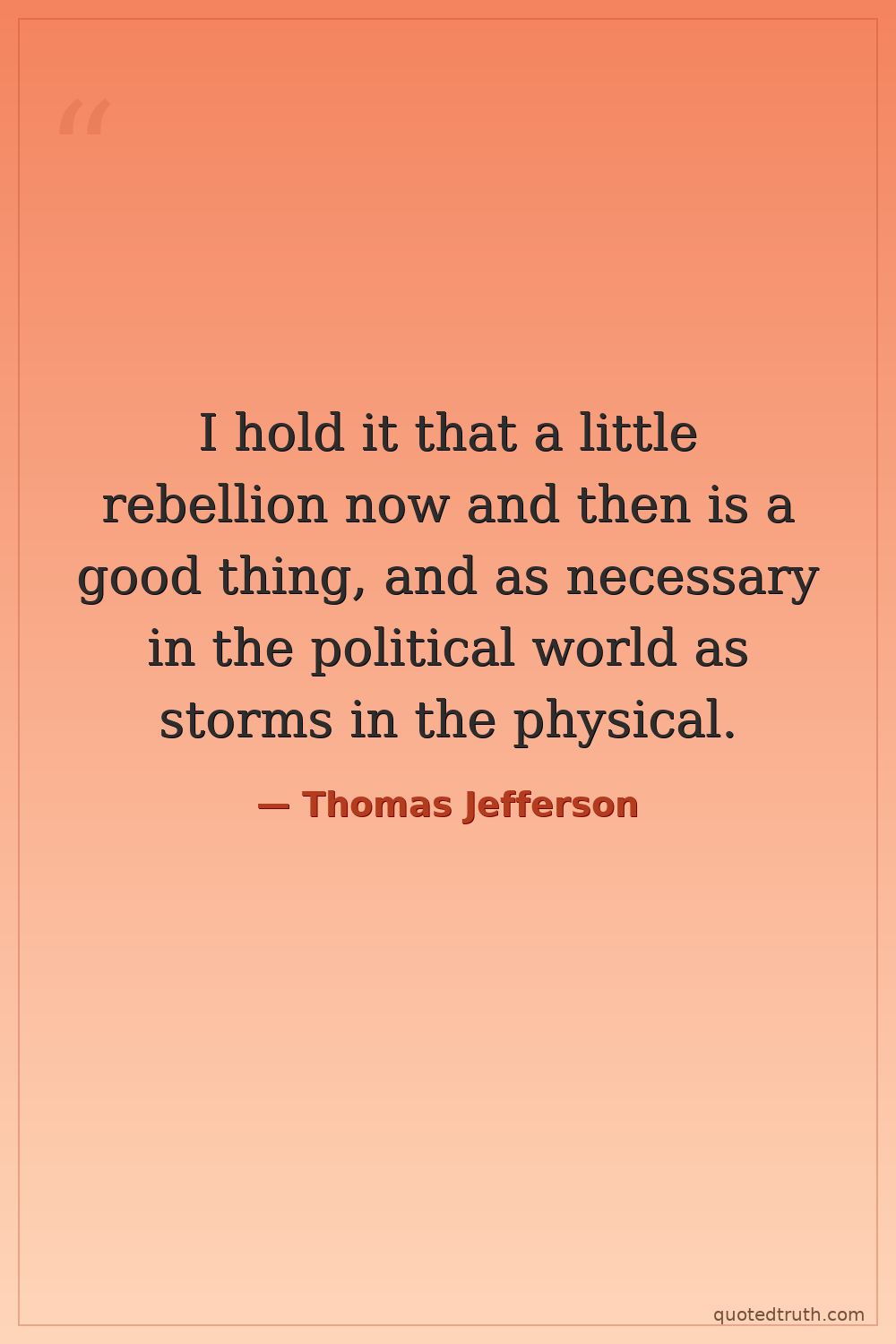 I hold it that a little rebellion now and then is a good thing, and as necessary in the political world as storms in the physical.