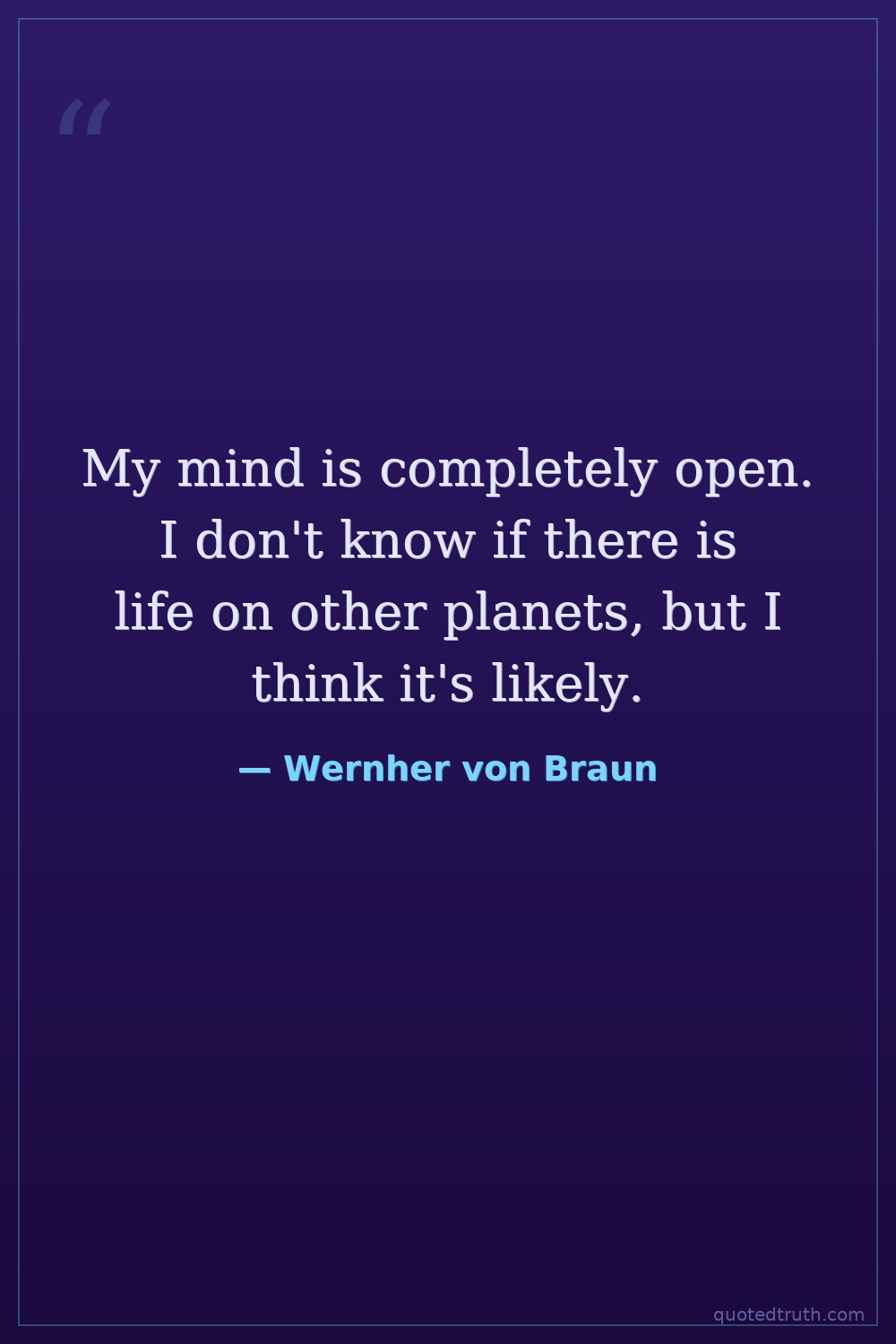 My mind is completely open. I don't know if there is life on other planets, but I think it's likely.