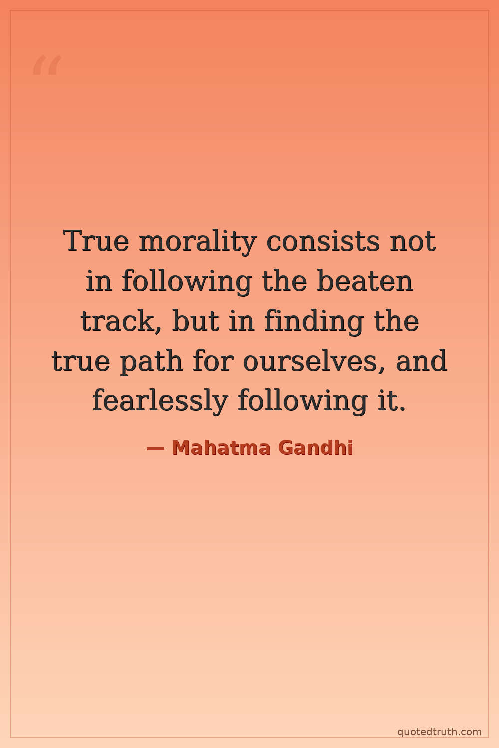True morality consists not in following the beaten track, but in finding the true path for ourselves, and fearlessly following it.