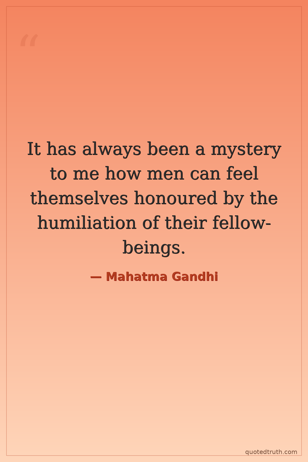 It has always been a mystery to me how men can feel themselves honoured by the humiliation of their fellow-beings.
