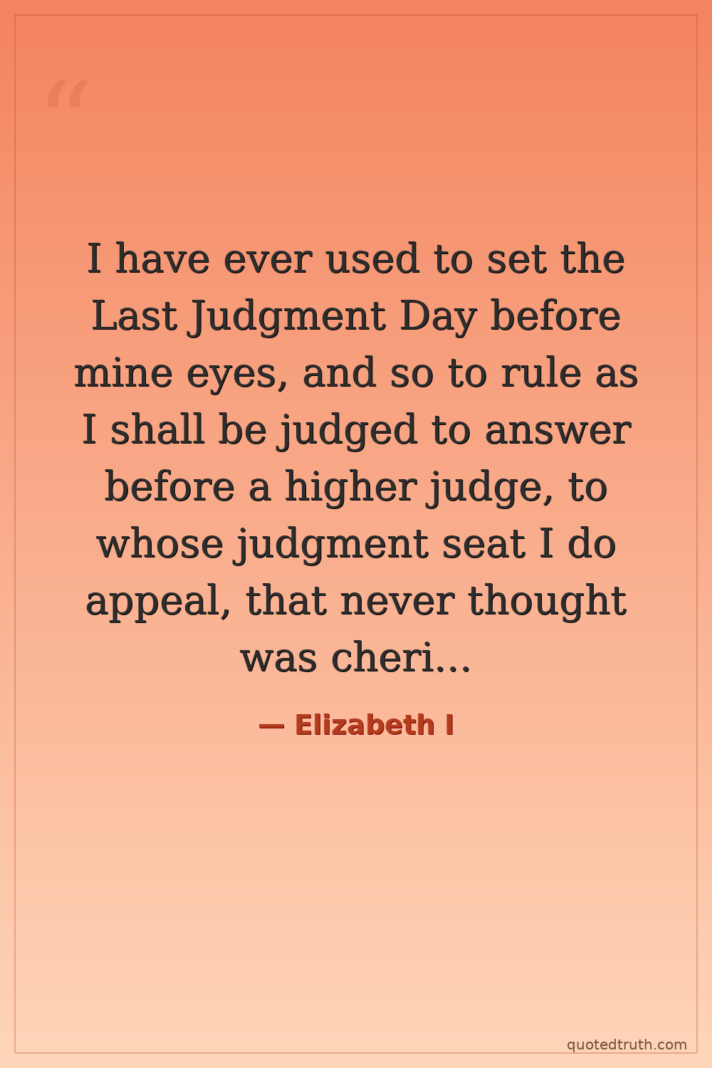 I have ever used to set the Last Judgment Day before mine eyes, and so to rule as I shall be judged to answer before a higher judge, to whose judgment seat I do appeal, that never thought was cherished in my heart that tended not to my people's good.