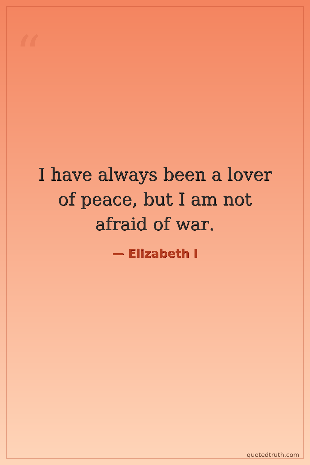 I have always been a lover of peace, but I am not afraid of war.