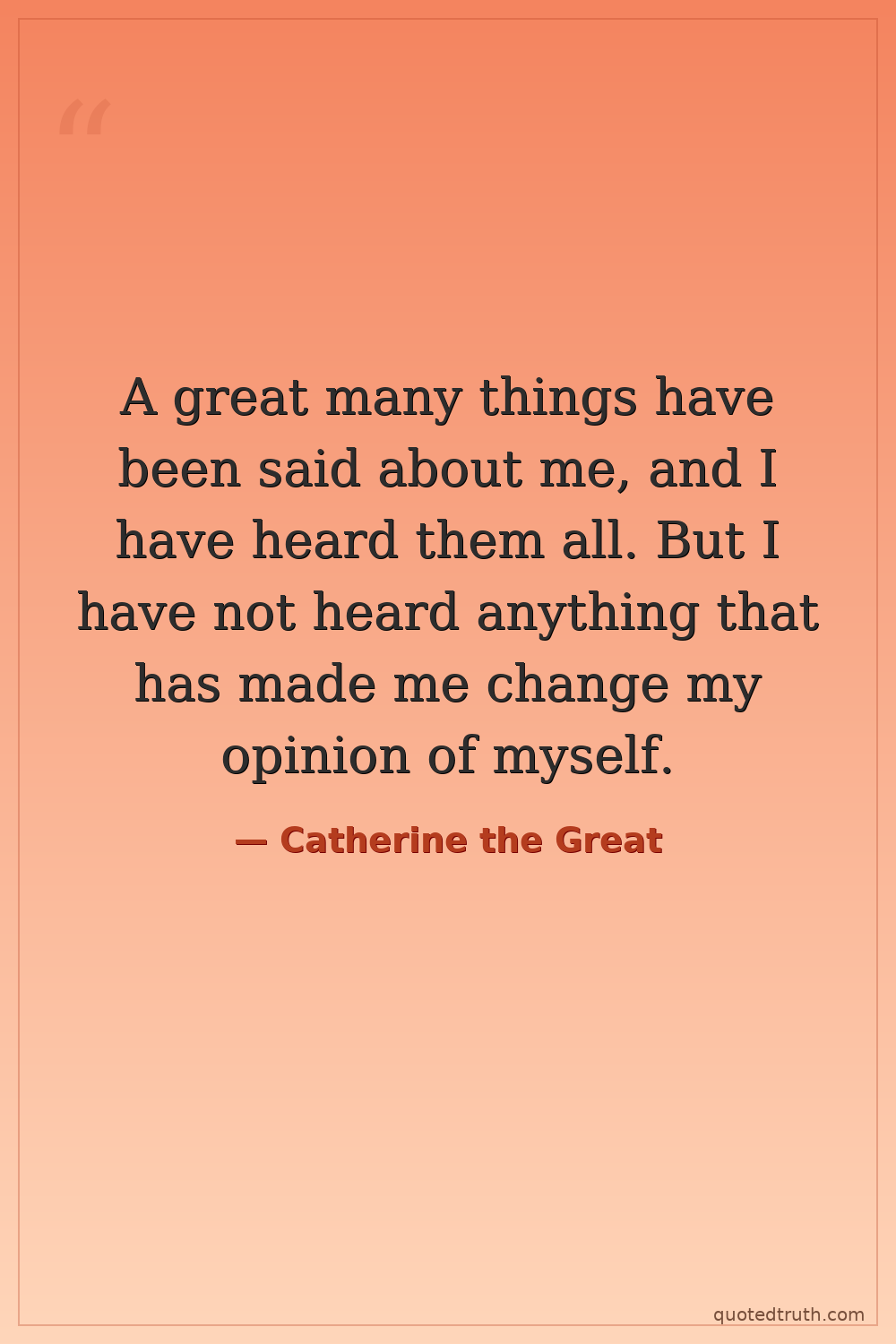 A great many things have been said about me, and I have heard them all. But I have not heard anything that has made me change my opinion of myself.