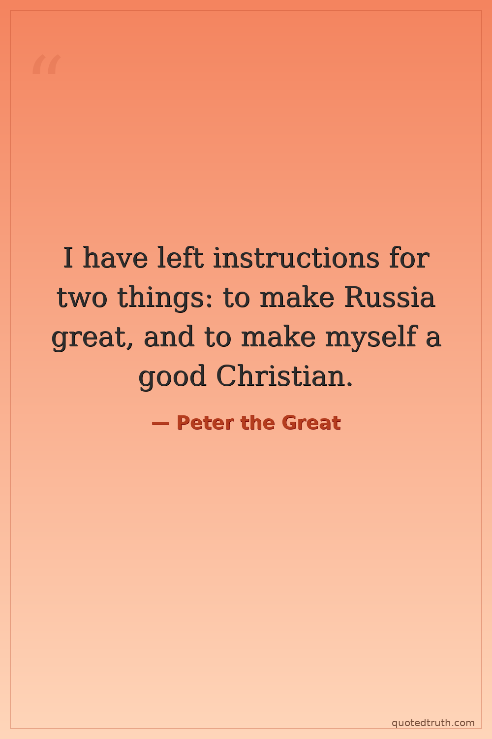 I have left instructions for two things: to make Russia great, and to make myself a good Christian.