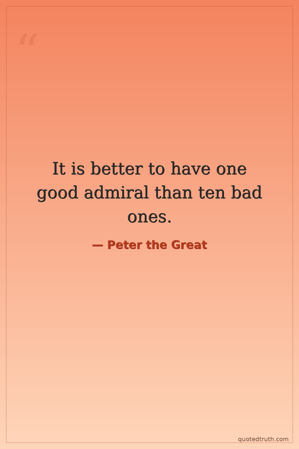 It is better to have one good admiral than ten bad ones.