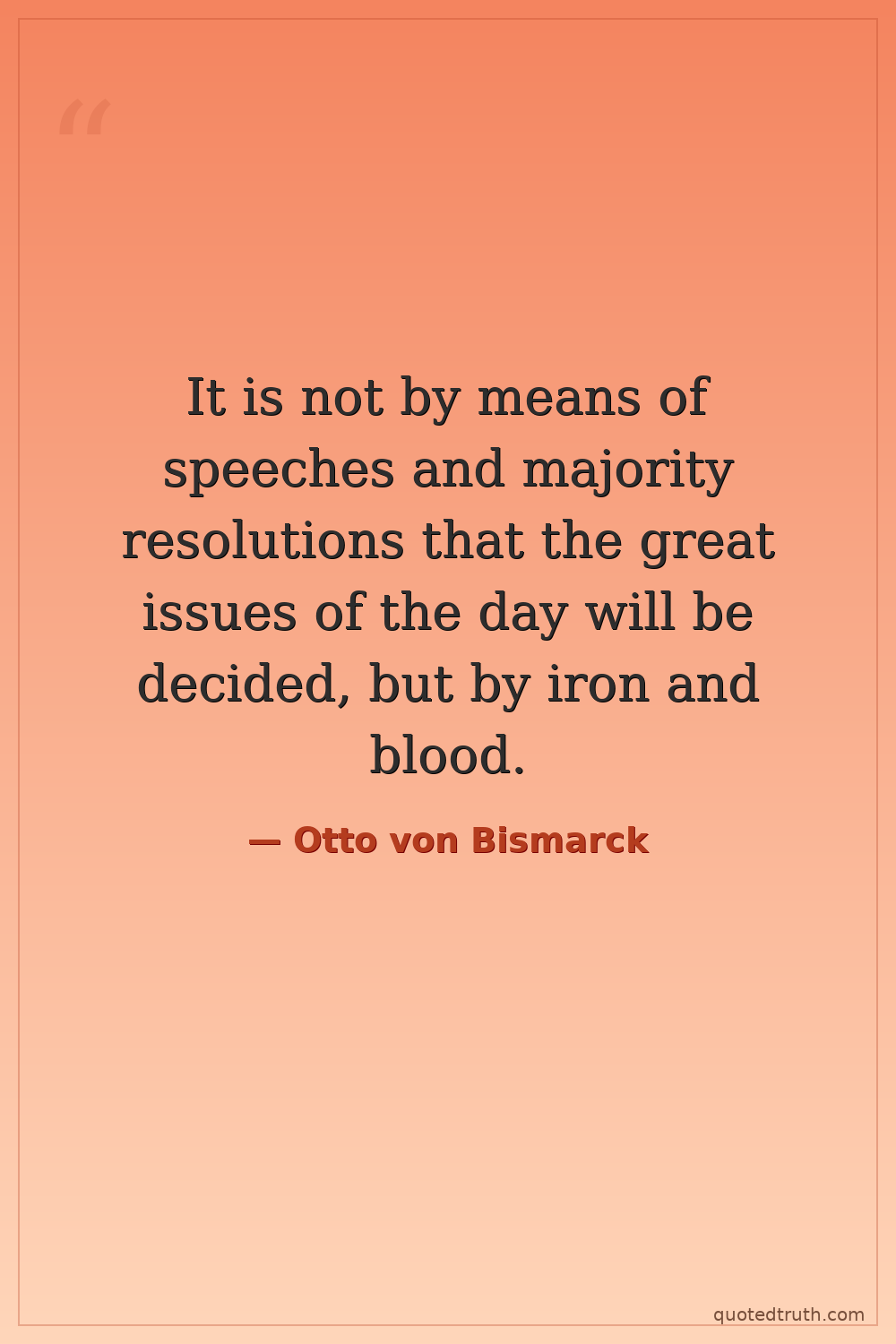 It is not by means of speeches and majority resolutions that the great issues of the day will be decided, but by iron and blood.