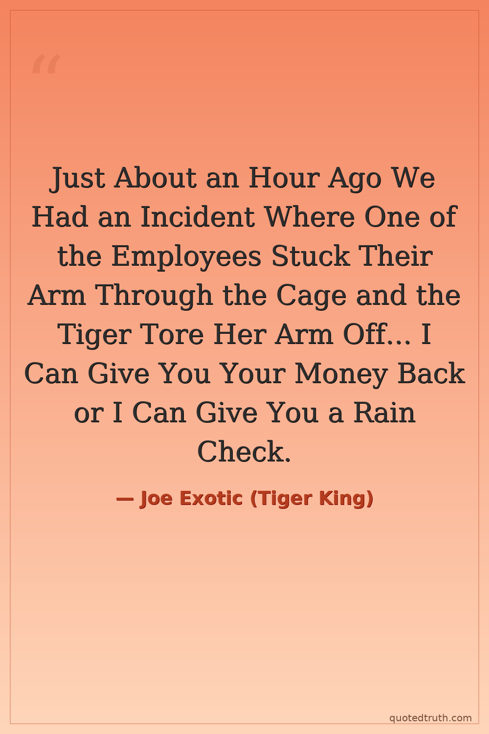 Just About an Hour Ago We Had an Incident Where One of the Employees Stuck Their Arm Through the Cage and the Tiger Tore Her Arm Off... I Can Give You Your Money Back or I Can Give You a Rain Check.