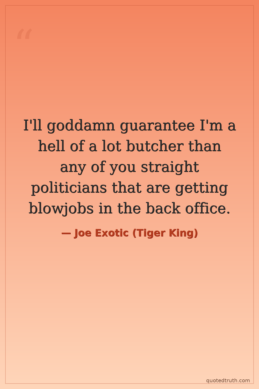 I'll goddamn guarantee I'm a hell of a lot butcher than any of you straight politicians that are getting blowjobs in the back office.