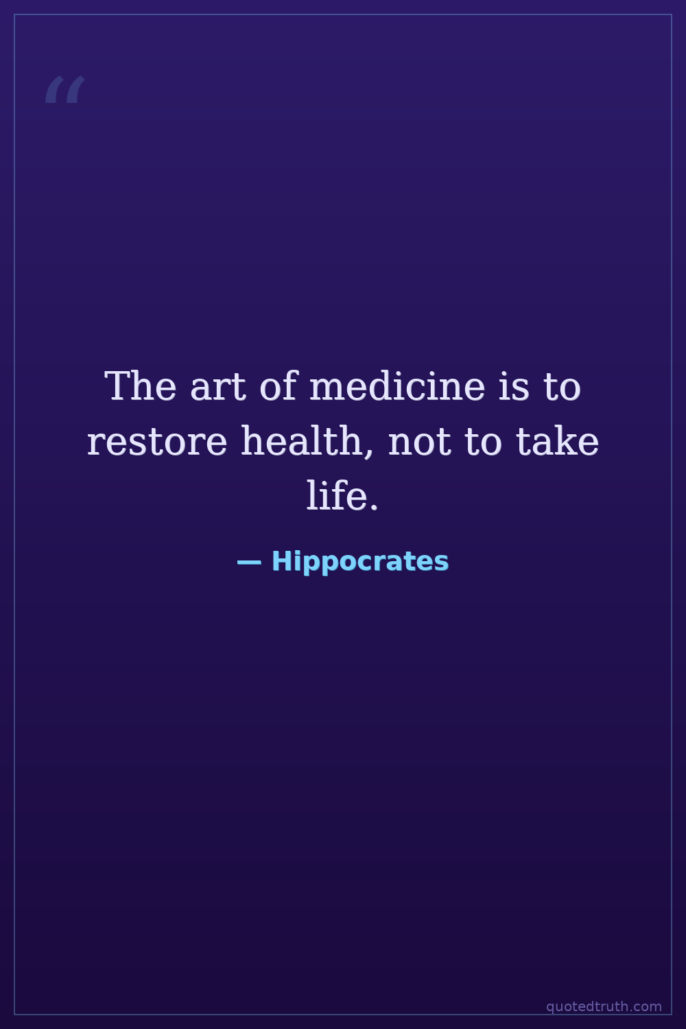 The art of medicine is to restore health, not to take life.