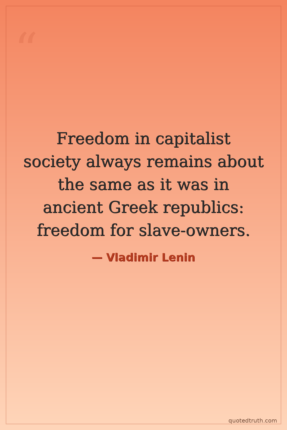 Freedom in capitalist society always remains about the same as it was in ancient Greek republics: freedom for slave-owners.