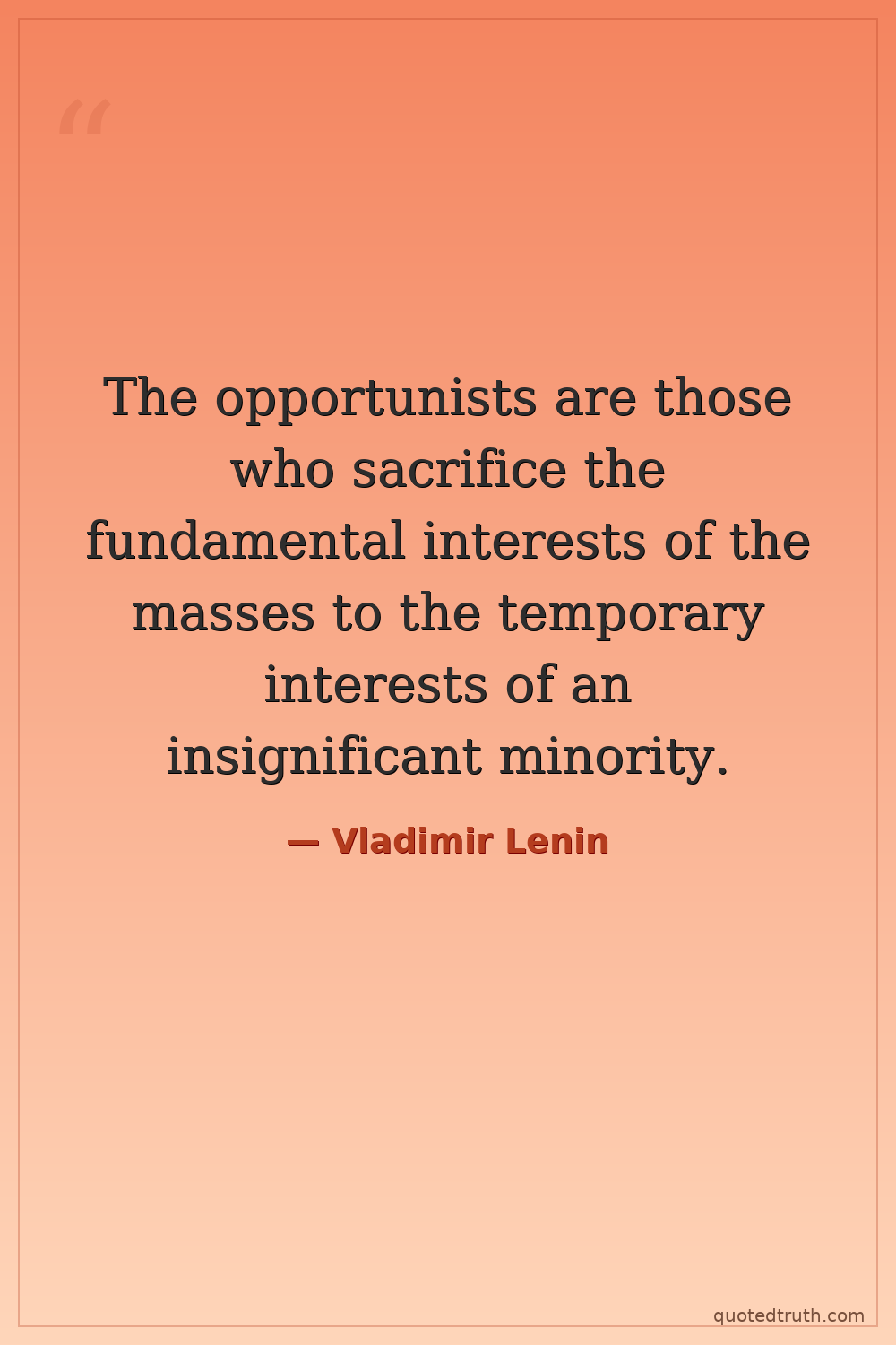 The opportunists are those who sacrifice the fundamental interests of the masses to the temporary interests of an insignificant minority.