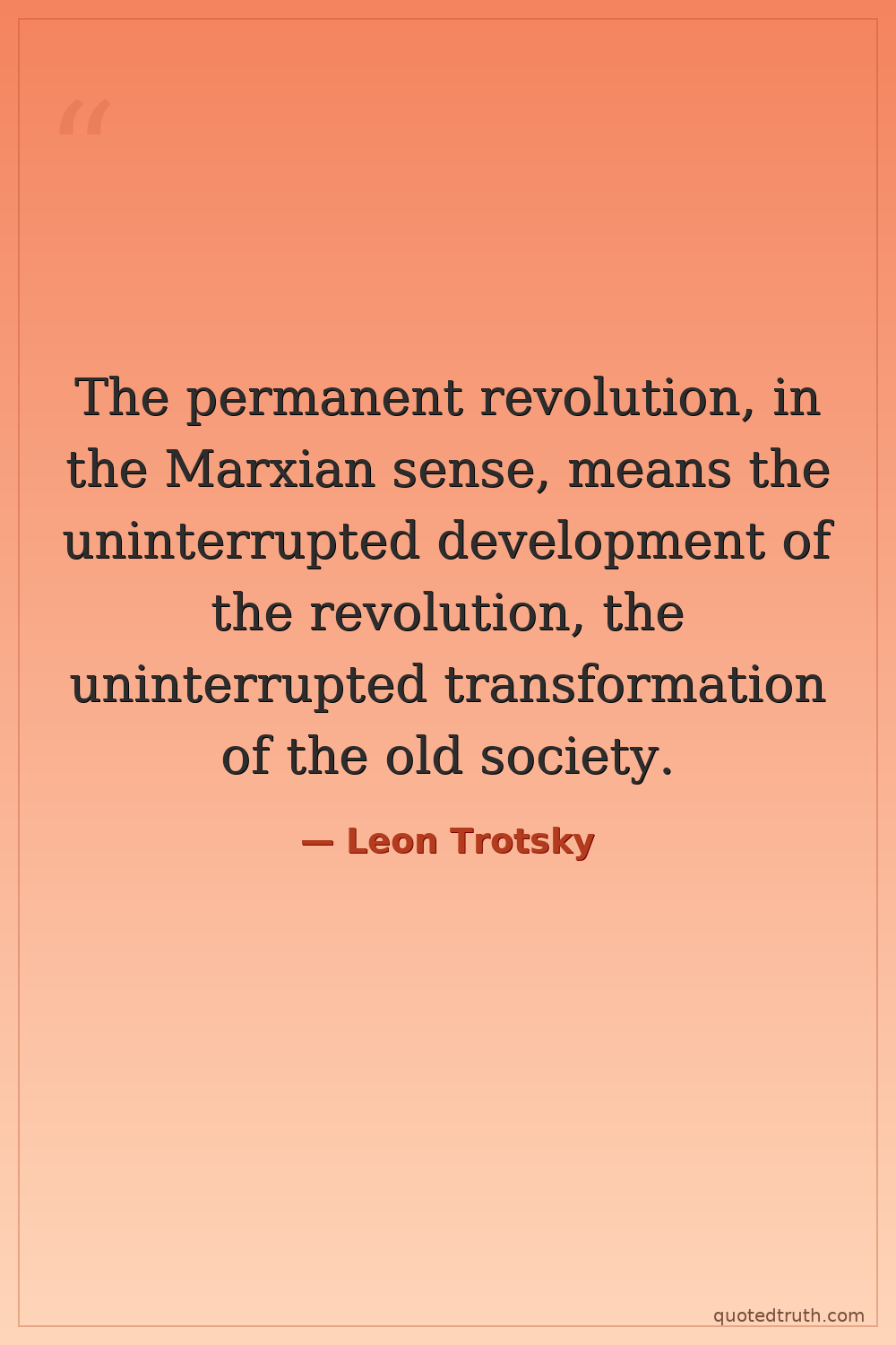 The permanent revolution, in the Marxian sense, means the uninterrupted development of the revolution, the uninterrupted transformation of the old society.