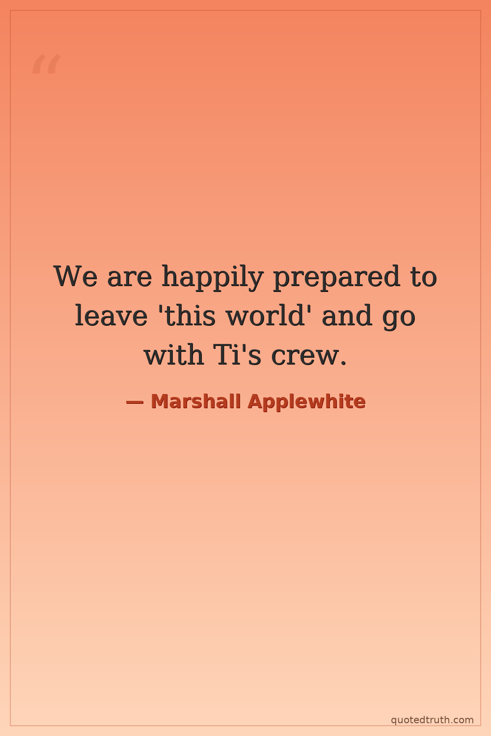 We are happily prepared to leave 'this world' and go with Ti's crew.