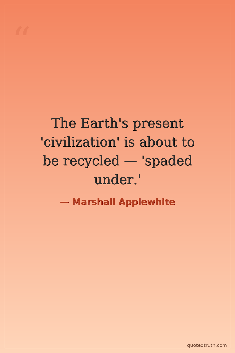 The Earth's present 'civilization' is about to be recycled — 'spaded under.'