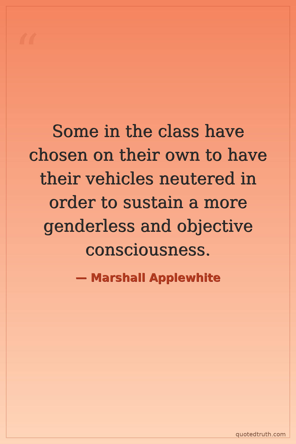 Some in the class have chosen on their own to have their vehicles neutered in order to sustain a more genderless and objective consciousness.