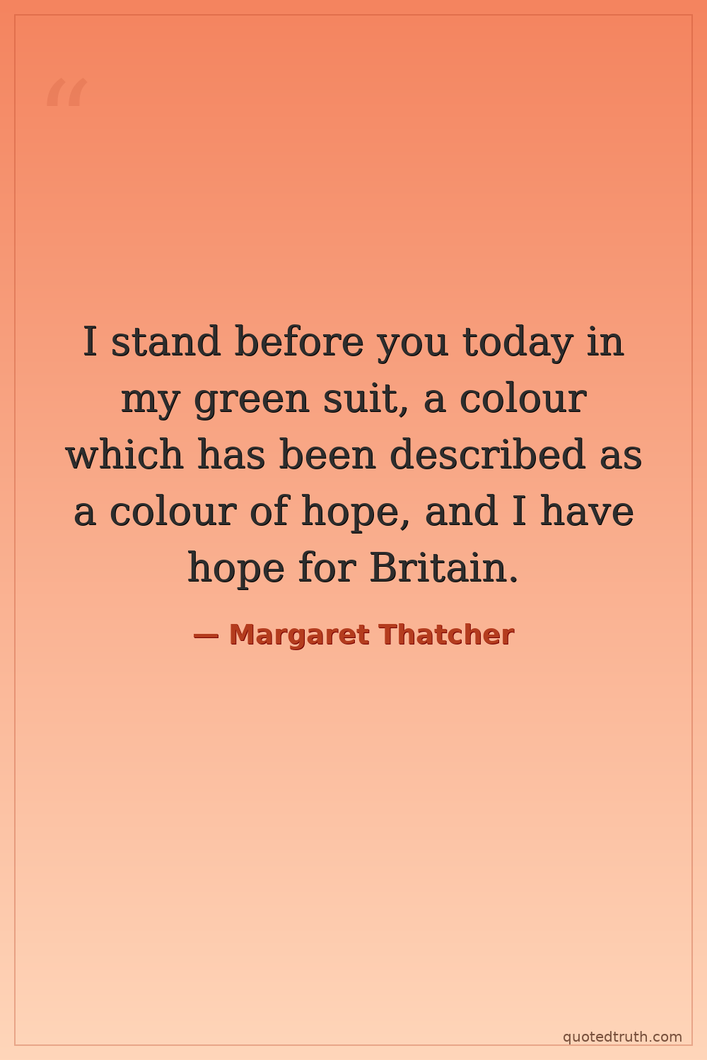 I stand before you today in my green suit, a colour which has been described as a colour of hope, and I have hope for Britain.