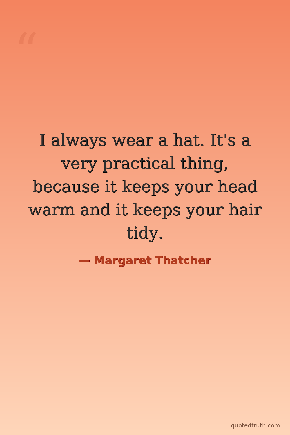 I always wear a hat. It's a very practical thing, because it keeps your head warm and it keeps your hair tidy.