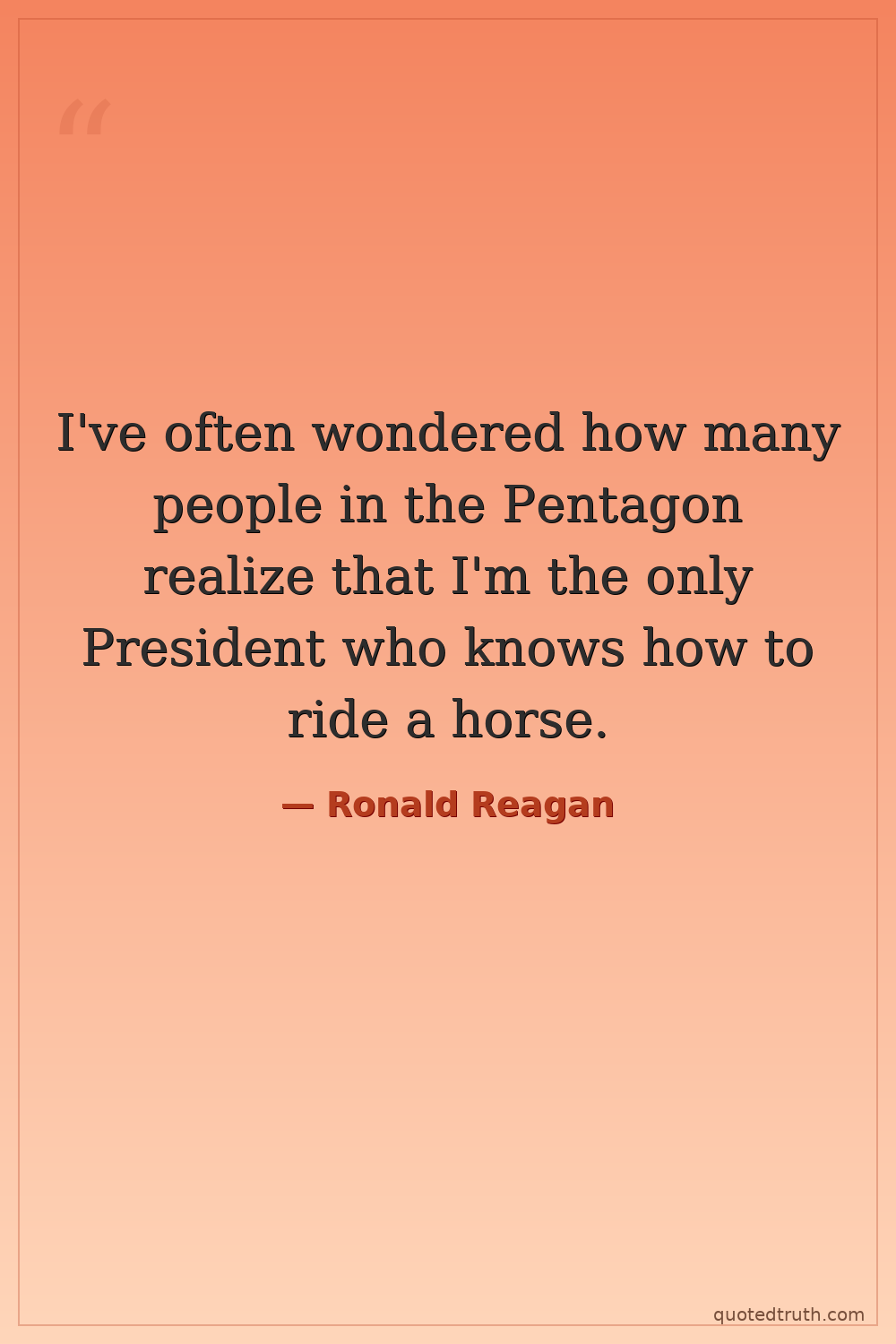 I've often wondered how many people in the Pentagon realize that I'm the only President who knows how to ride a horse.