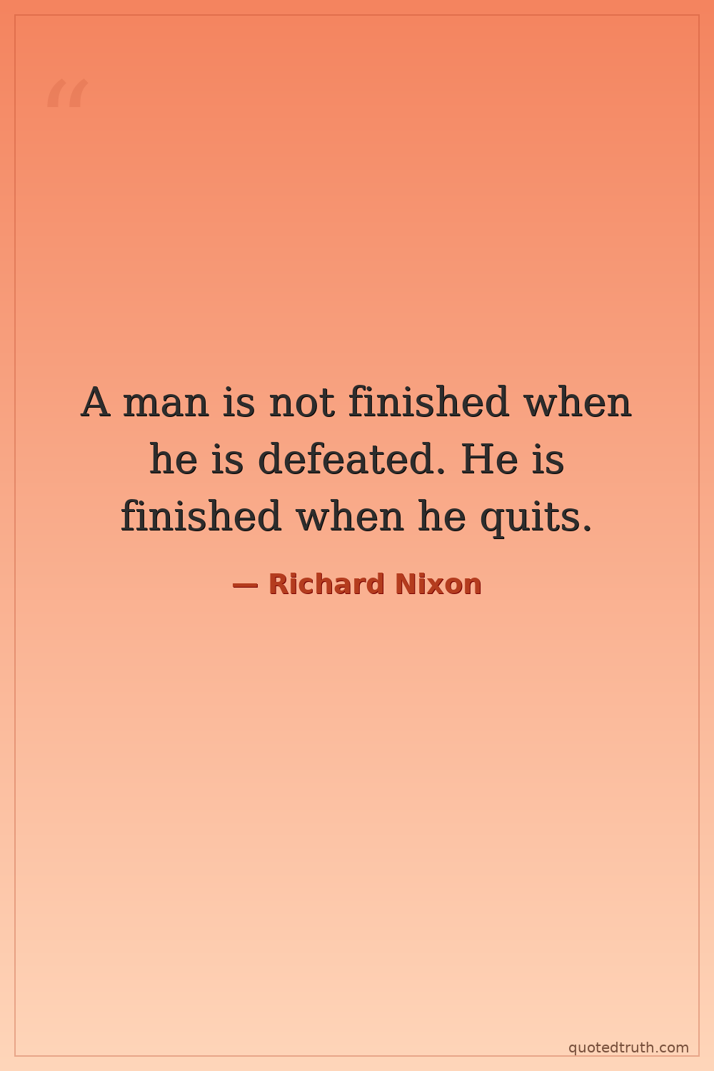 A man is not finished when he is defeated. He is finished when he quits.