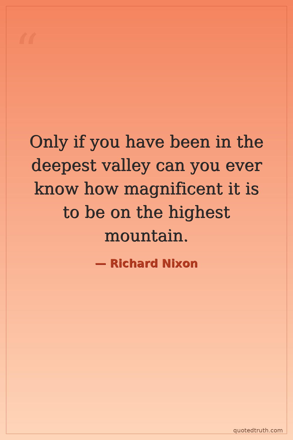 Only if you have been in the deepest valley can you ever know how magnificent it is to be on the highest mountain.