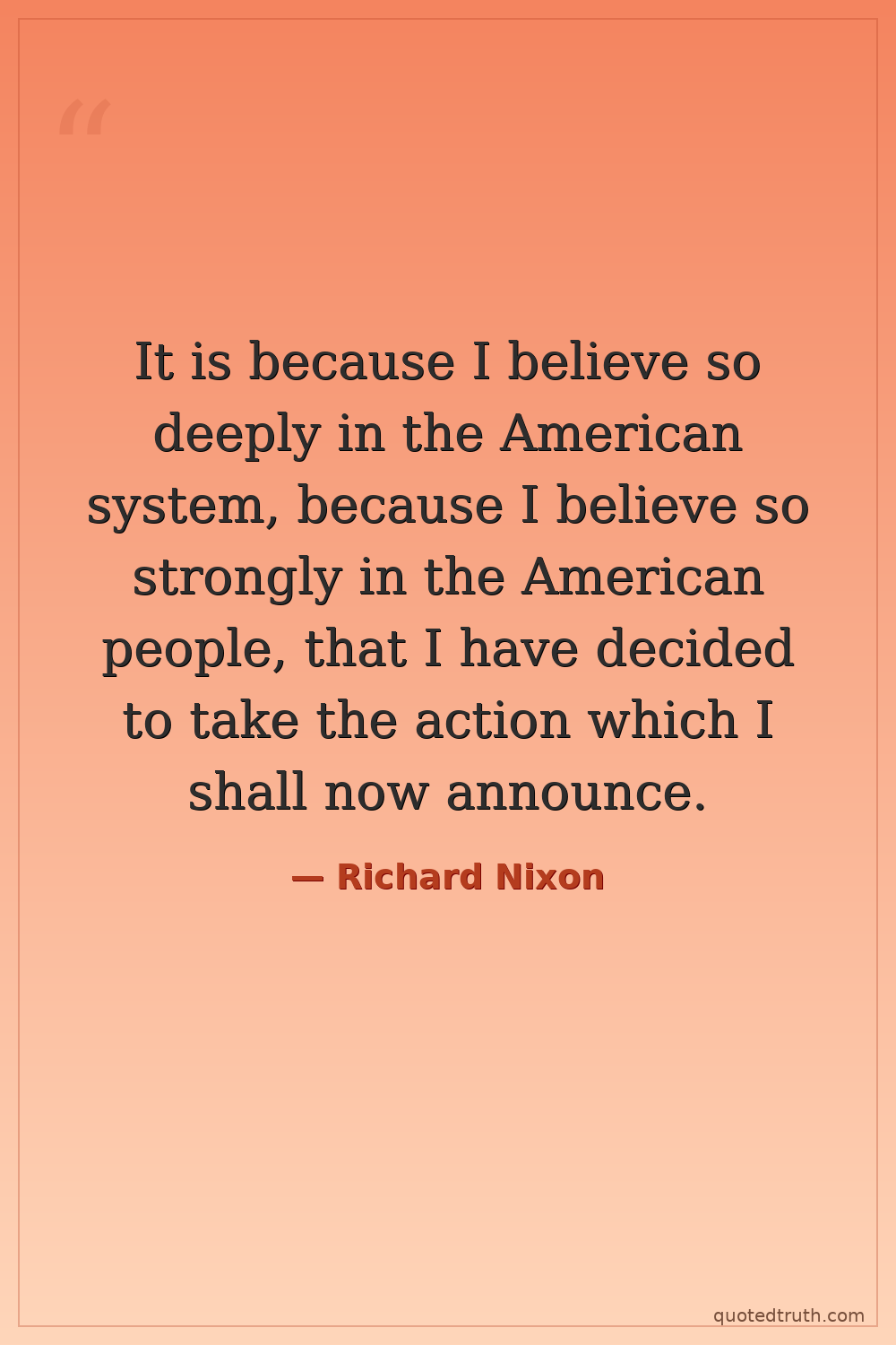 It is because I believe so deeply in the American system, because I believe so strongly in the American people, that I have decided to take the action which I shall now announce.