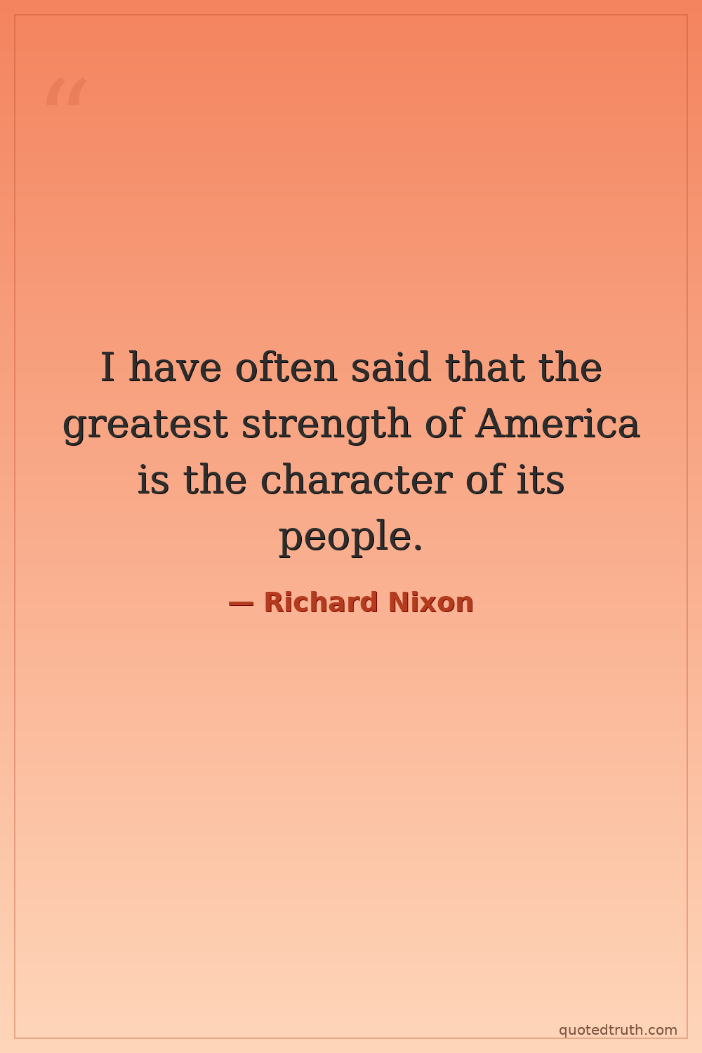 I have often said that the greatest strength of America is the character of its people.