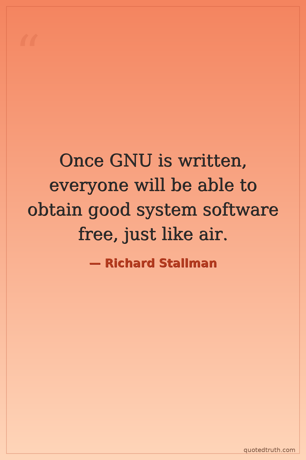Once GNU is written, everyone will be able to obtain good system software free, just like air.