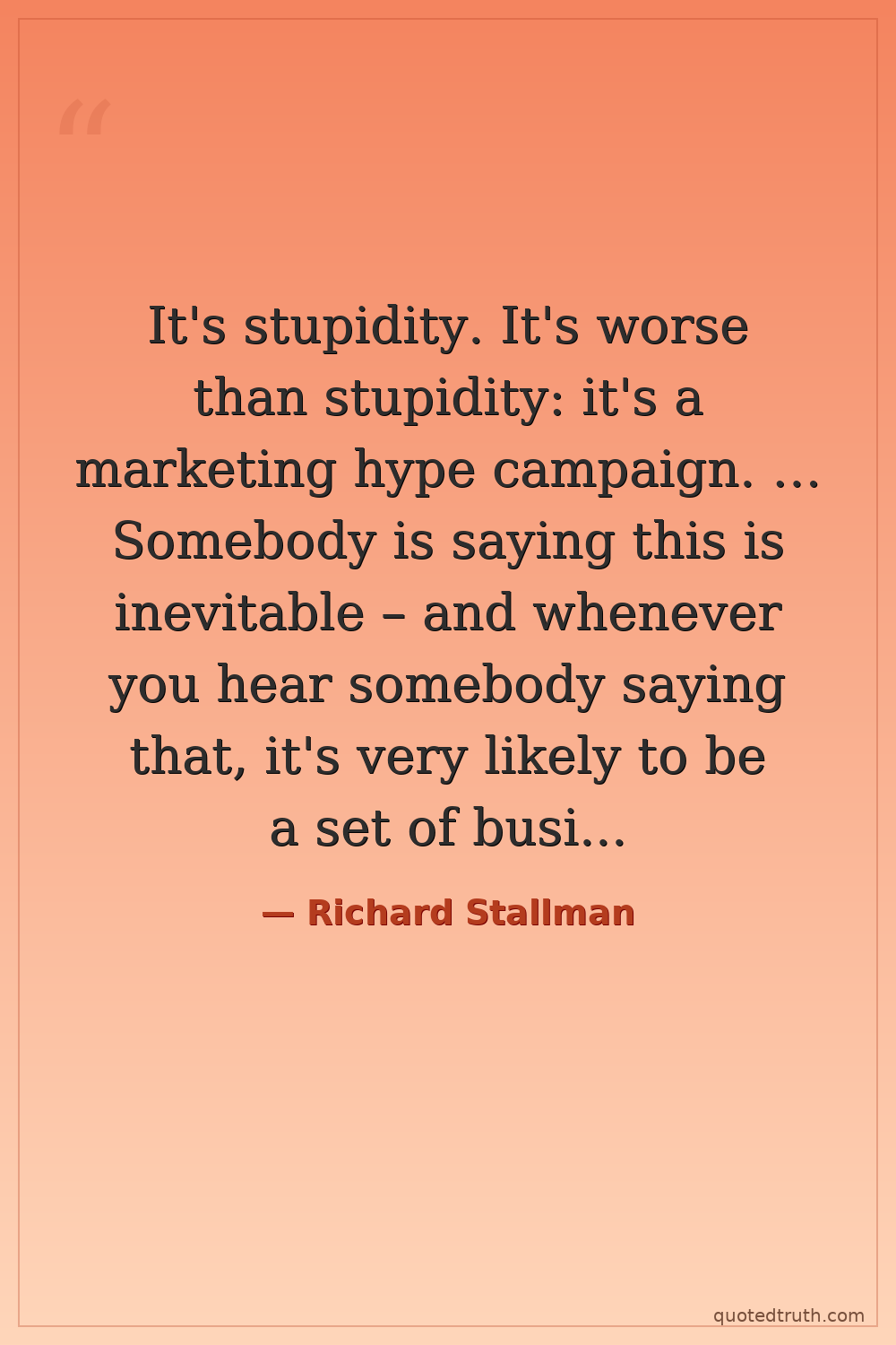 It's stupidity. It's worse than stupidity: it's a marketing hype campaign. … Somebody is saying this is inevitable – and whenever you hear somebody saying that, it's very likely to be a set of businesses campaigning to make it true.