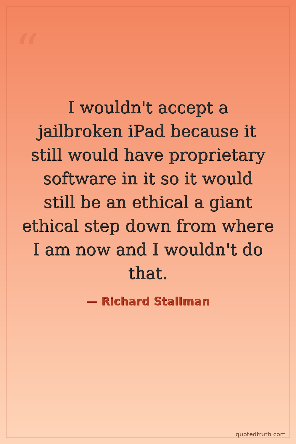 I wouldn't accept a jailbroken iPad because it still would have proprietary software in it so it would still be an ethical a giant ethical step down from where I am now and I wouldn't do that.