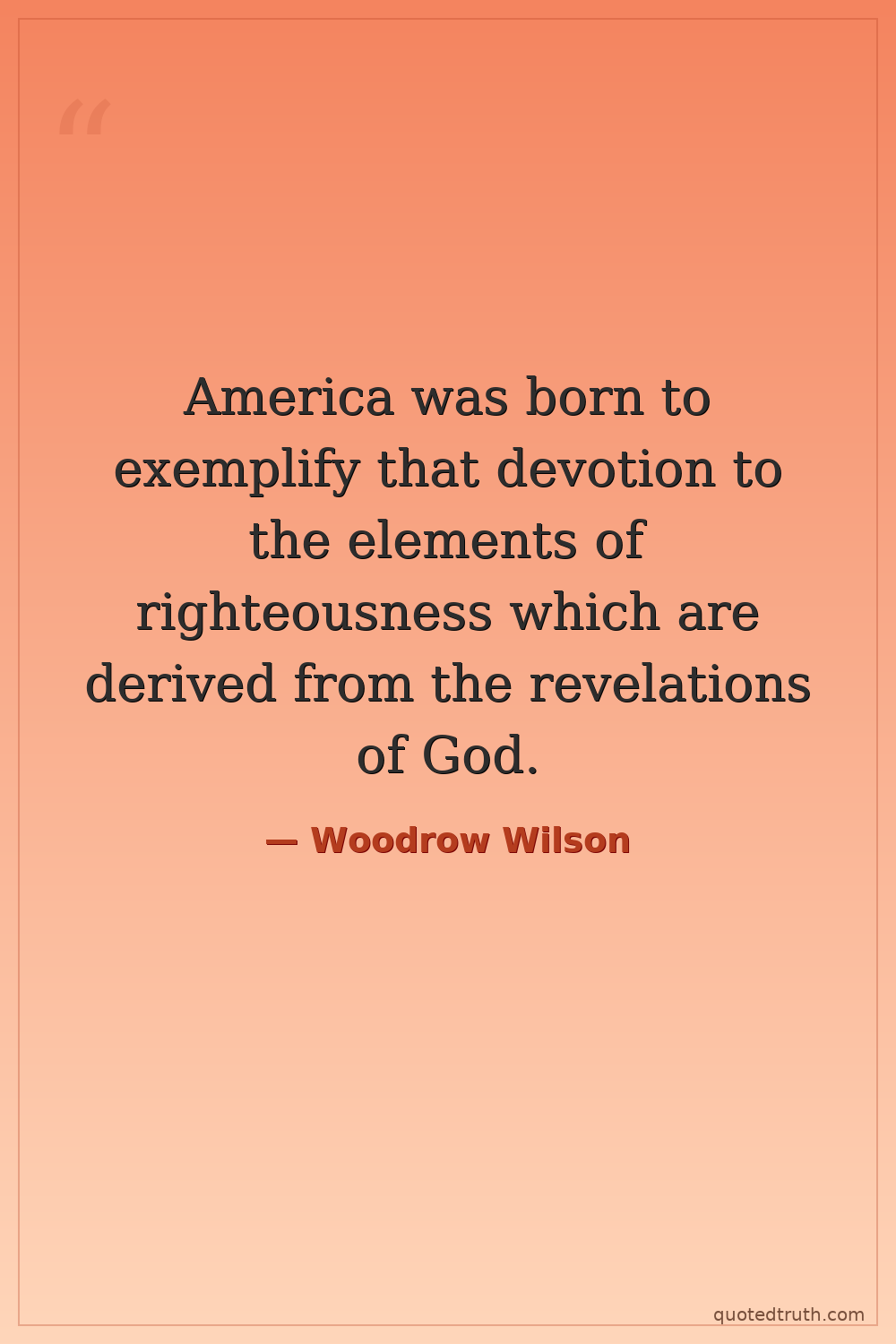America was born to exemplify that devotion to the elements of righteousness which are derived from the revelations of God.