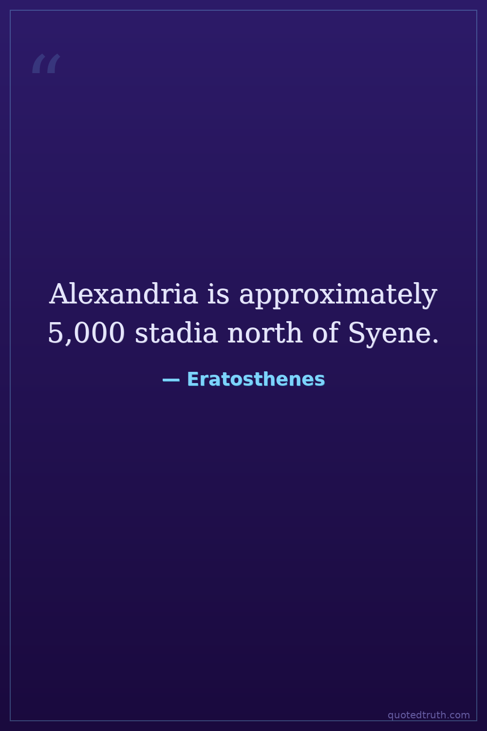 Alexandria is approximately 5,000 stadia north of Syene.