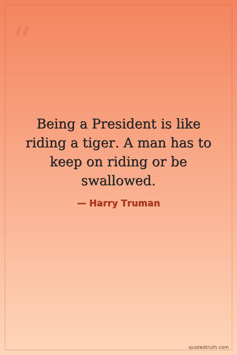 Being a President is like riding a tiger. A man has to keep on riding or be swallowed.