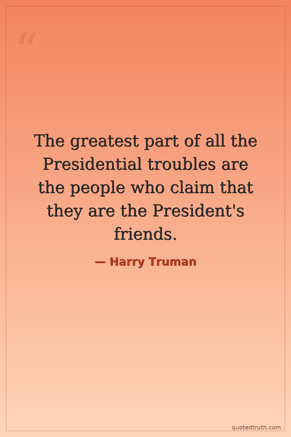 The greatest part of all the Presidential troubles are the people who claim that they are the President's friends.