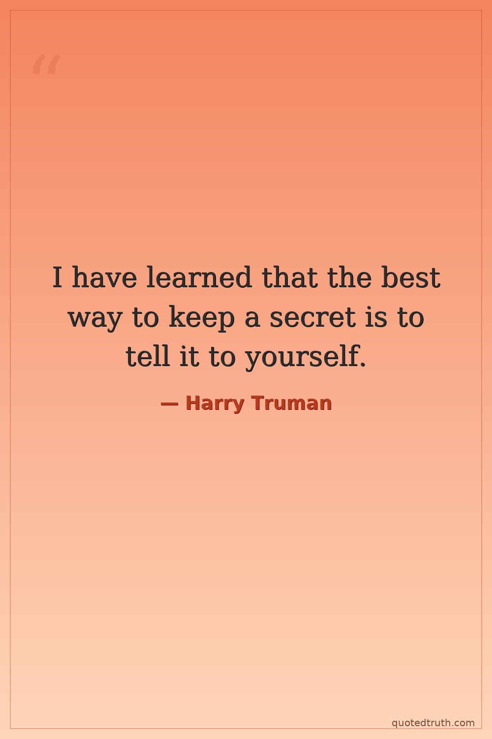 I have learned that the best way to keep a secret is to tell it to yourself.