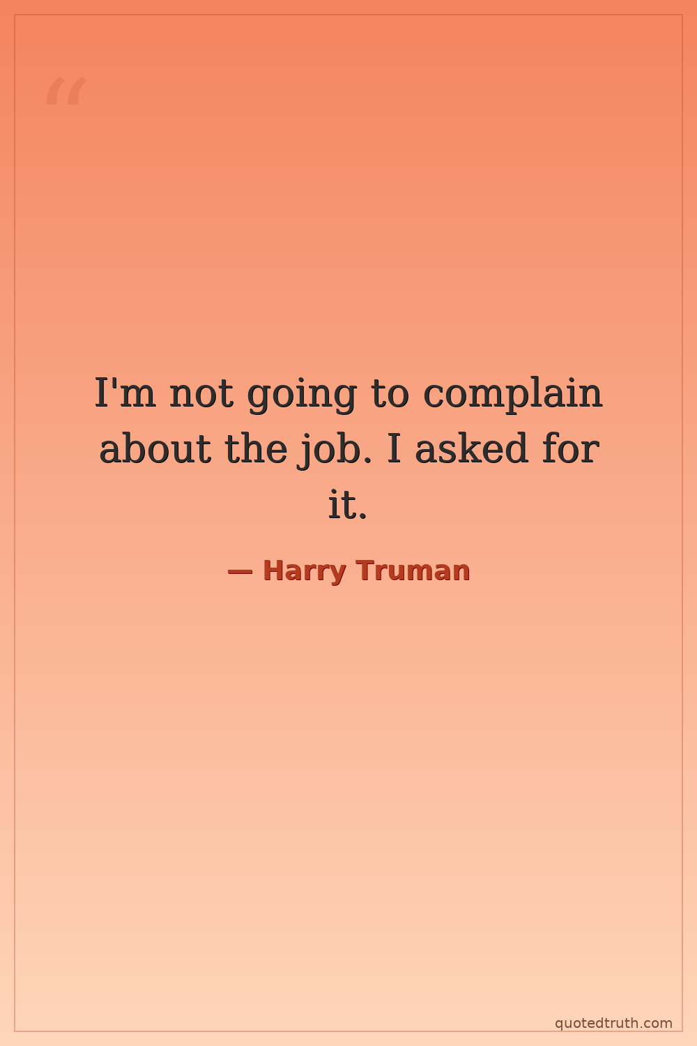 Humorous"I have often wondered if I did the right thing. But I am sure I did. There was no other choice."
