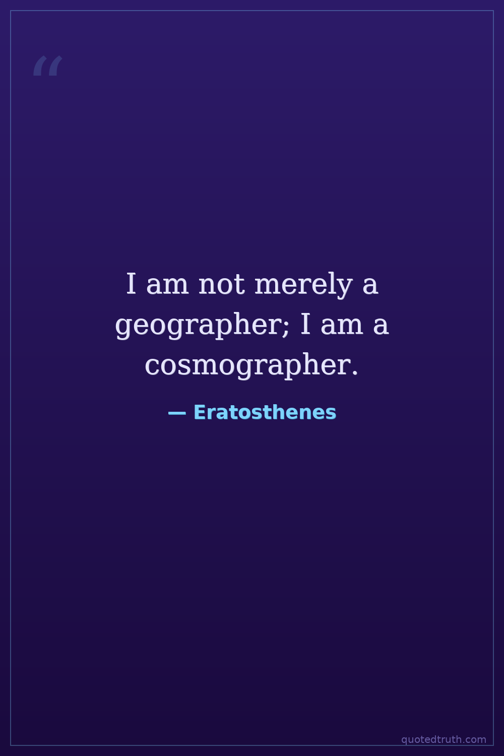 I am not merely a geographer; I am a cosmographer.
