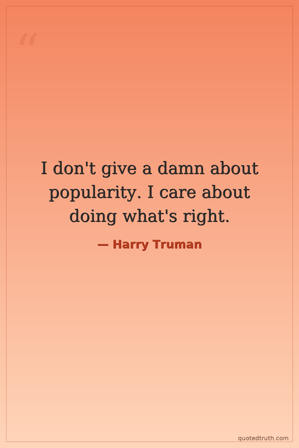 I don't give a damn about popularity. I care about doing what's right.