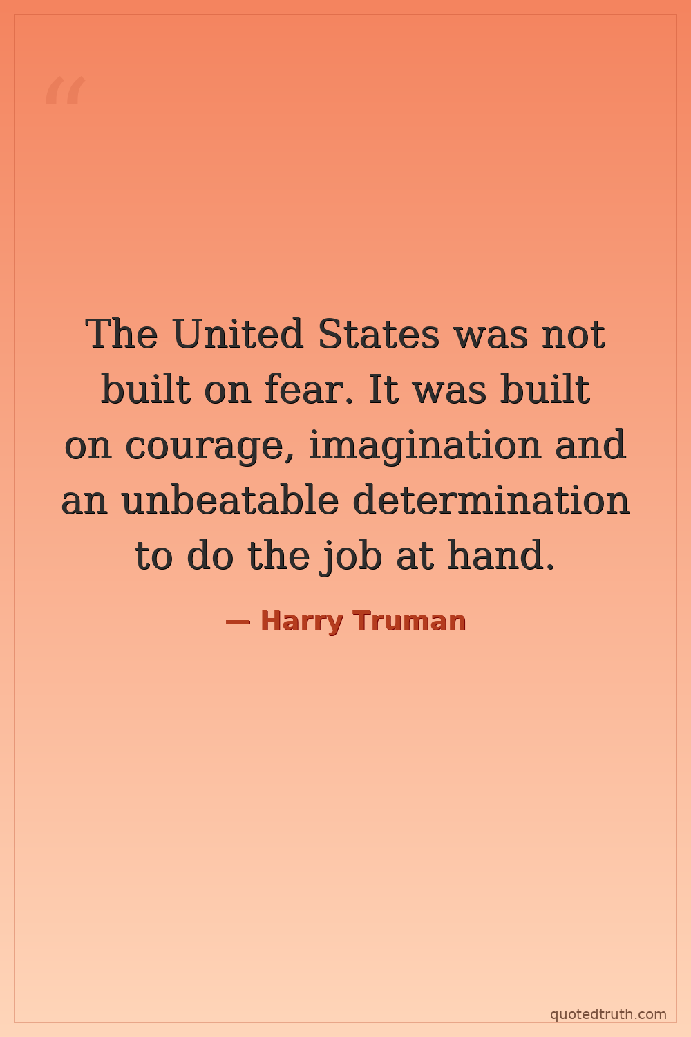 The United States was not built on fear. It was built on courage, imagination and an unbeatable determination to do the job at hand.