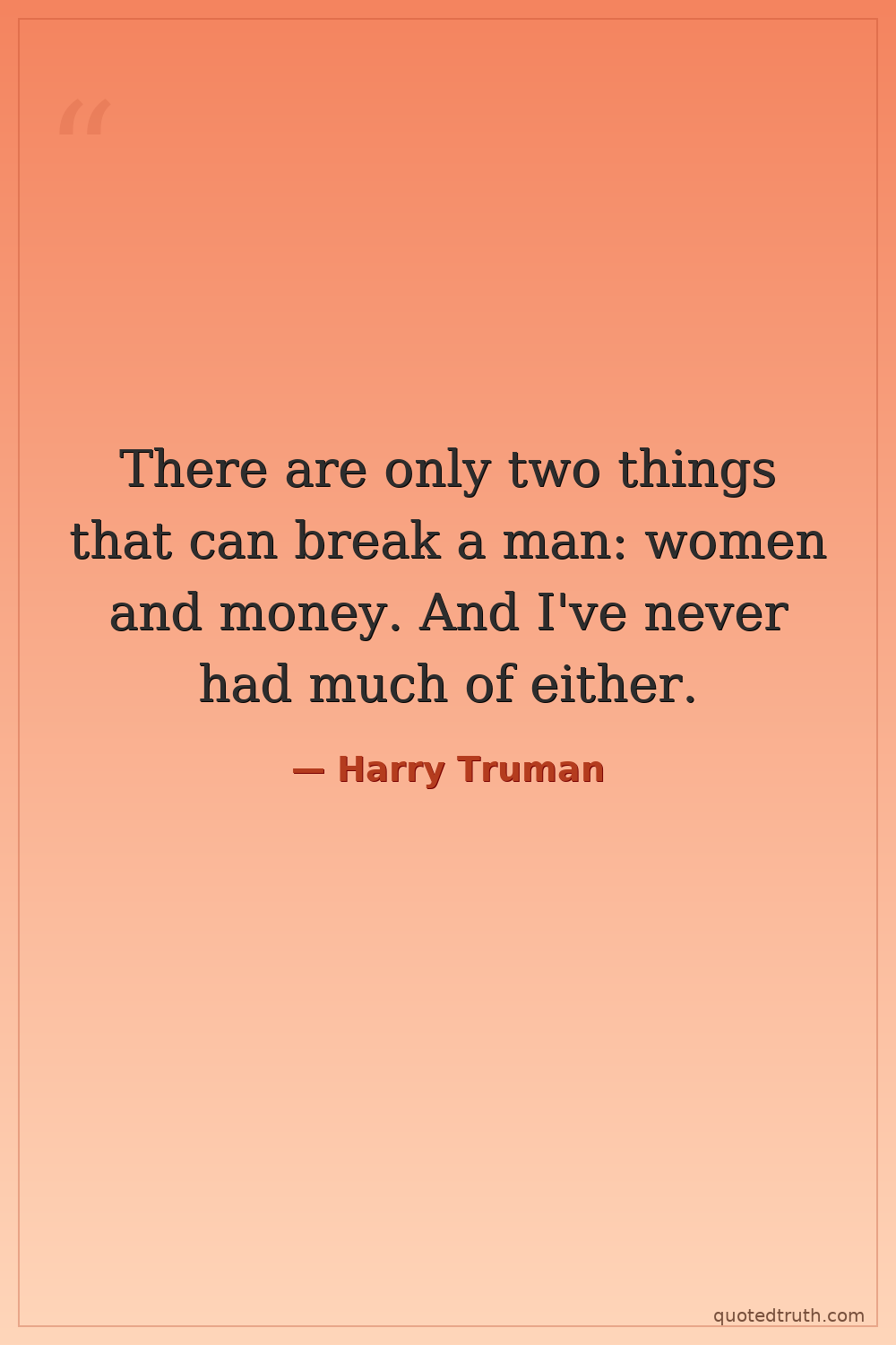 There are only two things that can break a man: women and money. And I've never had much of either.