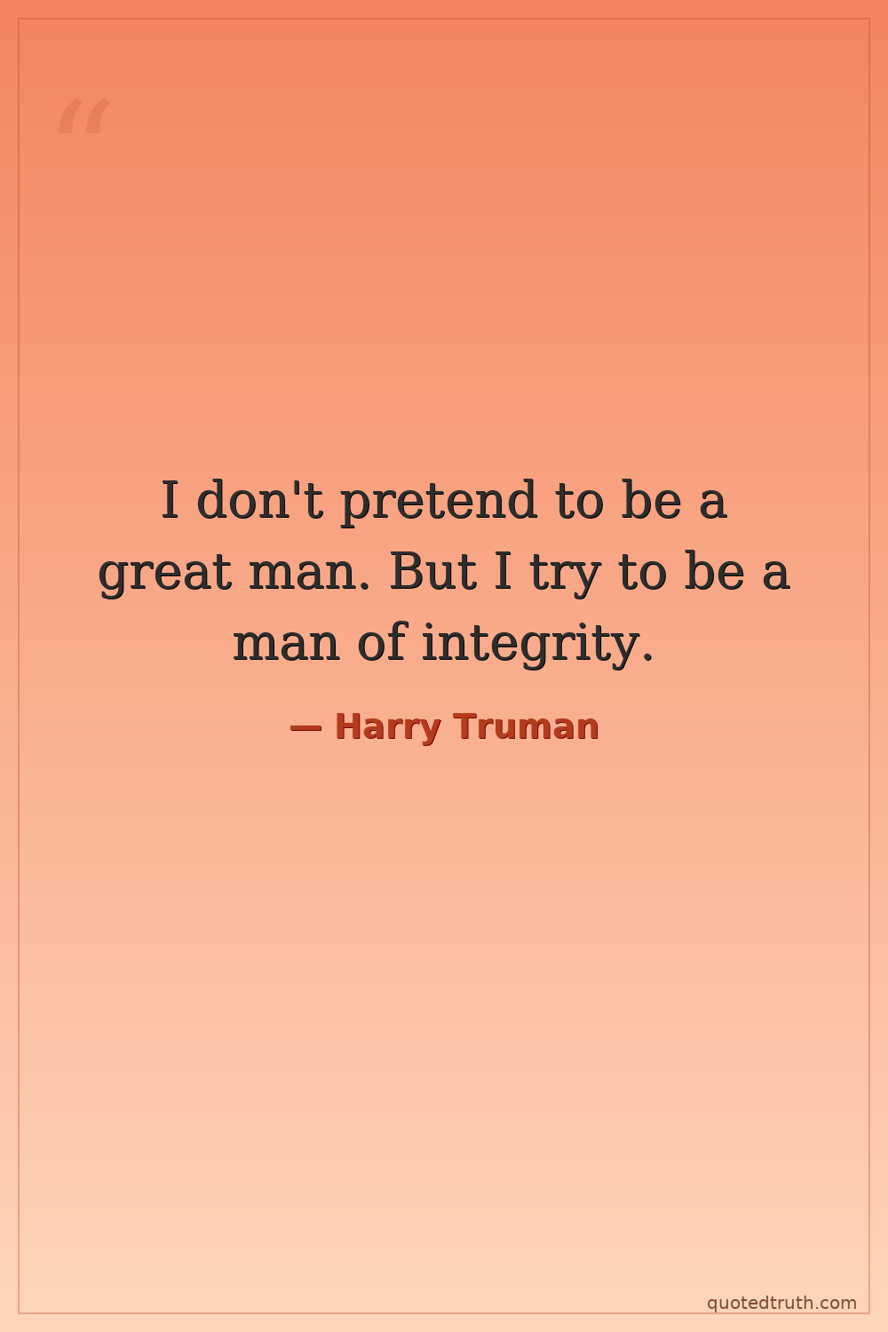 I don't pretend to be a great man. But I try to be a man of integrity.
