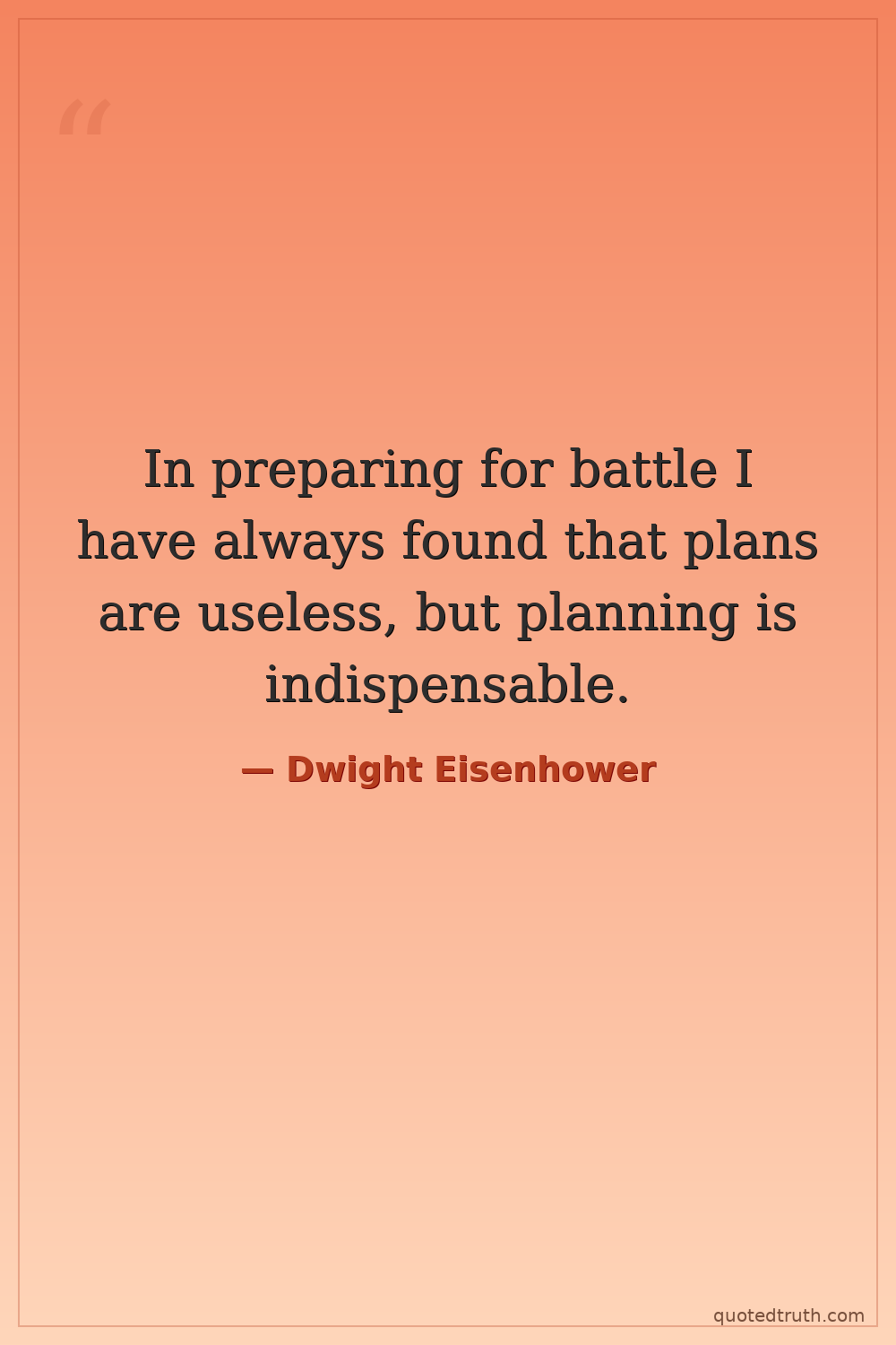 In preparing for battle I have always found that plans are useless, but planning is indispensable.