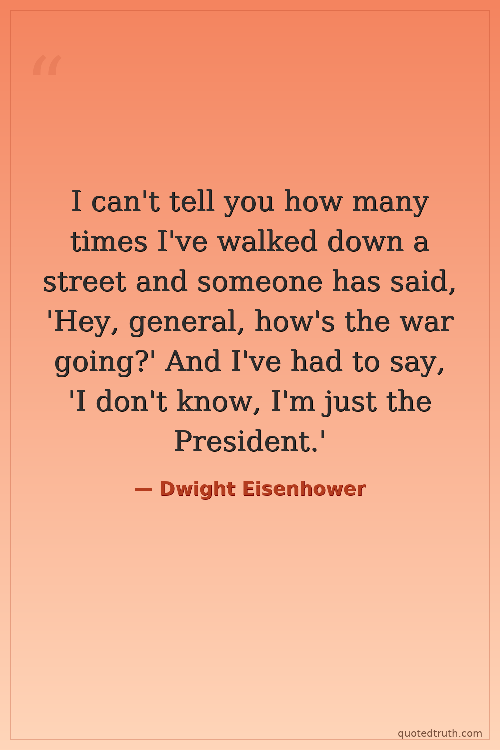I can't tell you how many times I've walked down a street and someone has said, 'Hey, general, how's the war going?' And I've had to say, 'I don't know, I'm just the President.'
