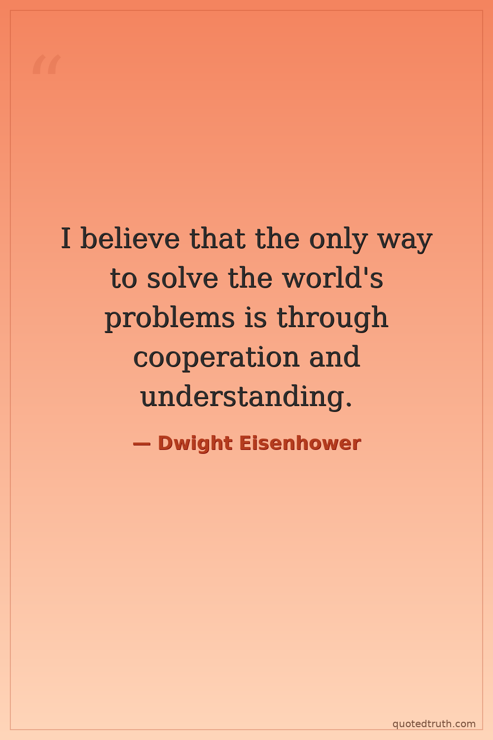 I believe that the only way to solve the world's problems is through cooperation and understanding.