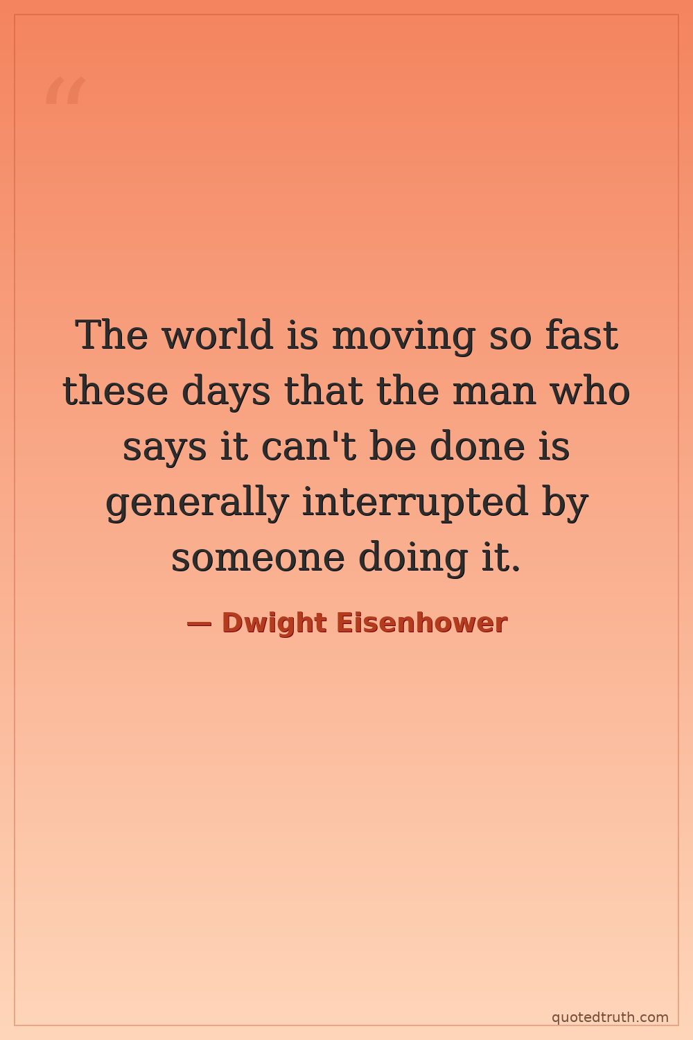 The world is moving so fast these days that the man who says it can't be done is generally interrupted by someone doing it.