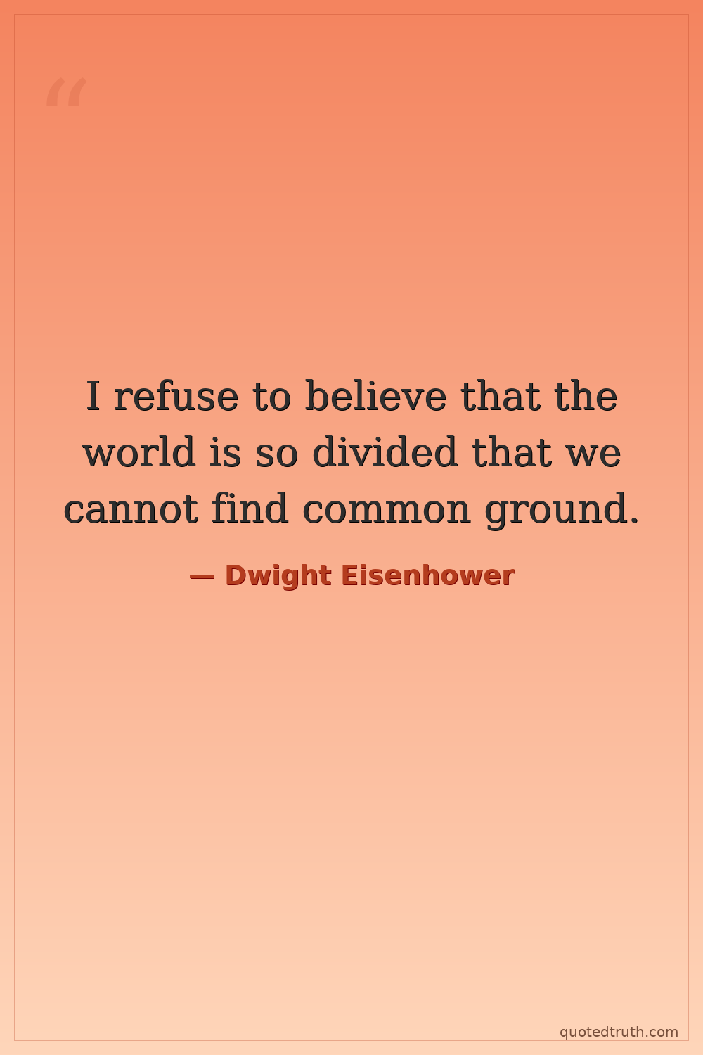 I refuse to believe that the world is so divided that we cannot find common ground.
