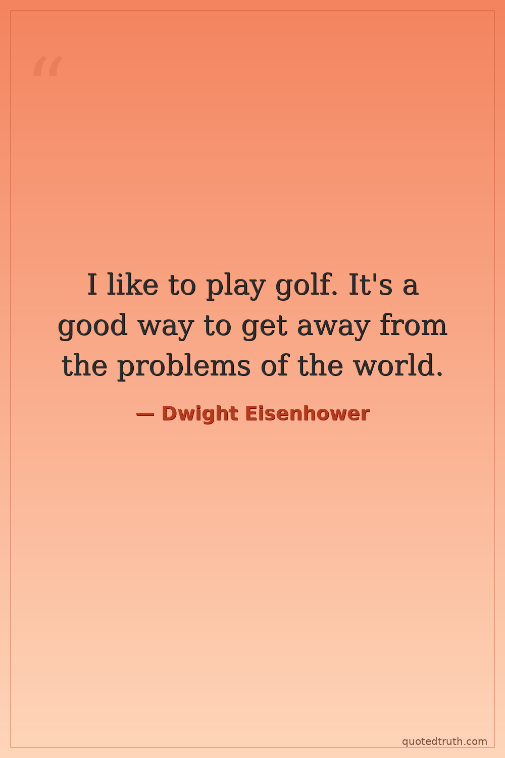 I like to play golf. It's a good way to get away from the problems of the world.