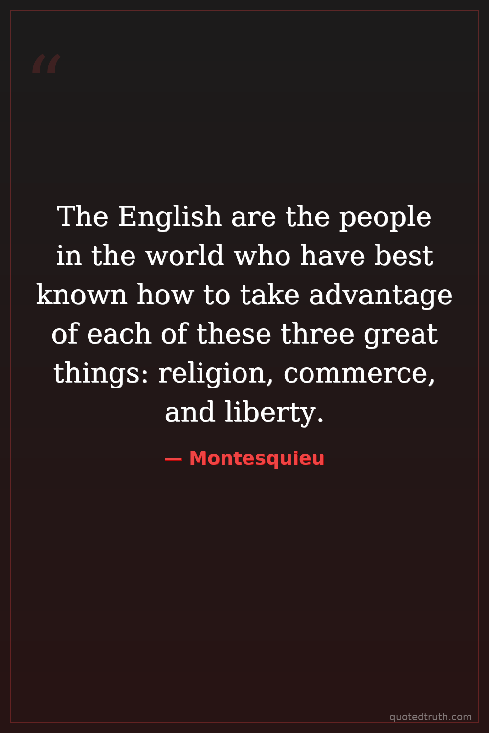 The English are the people in the world who have best known how to take advantage of each of these three great things: religion, commerce, and liberty.