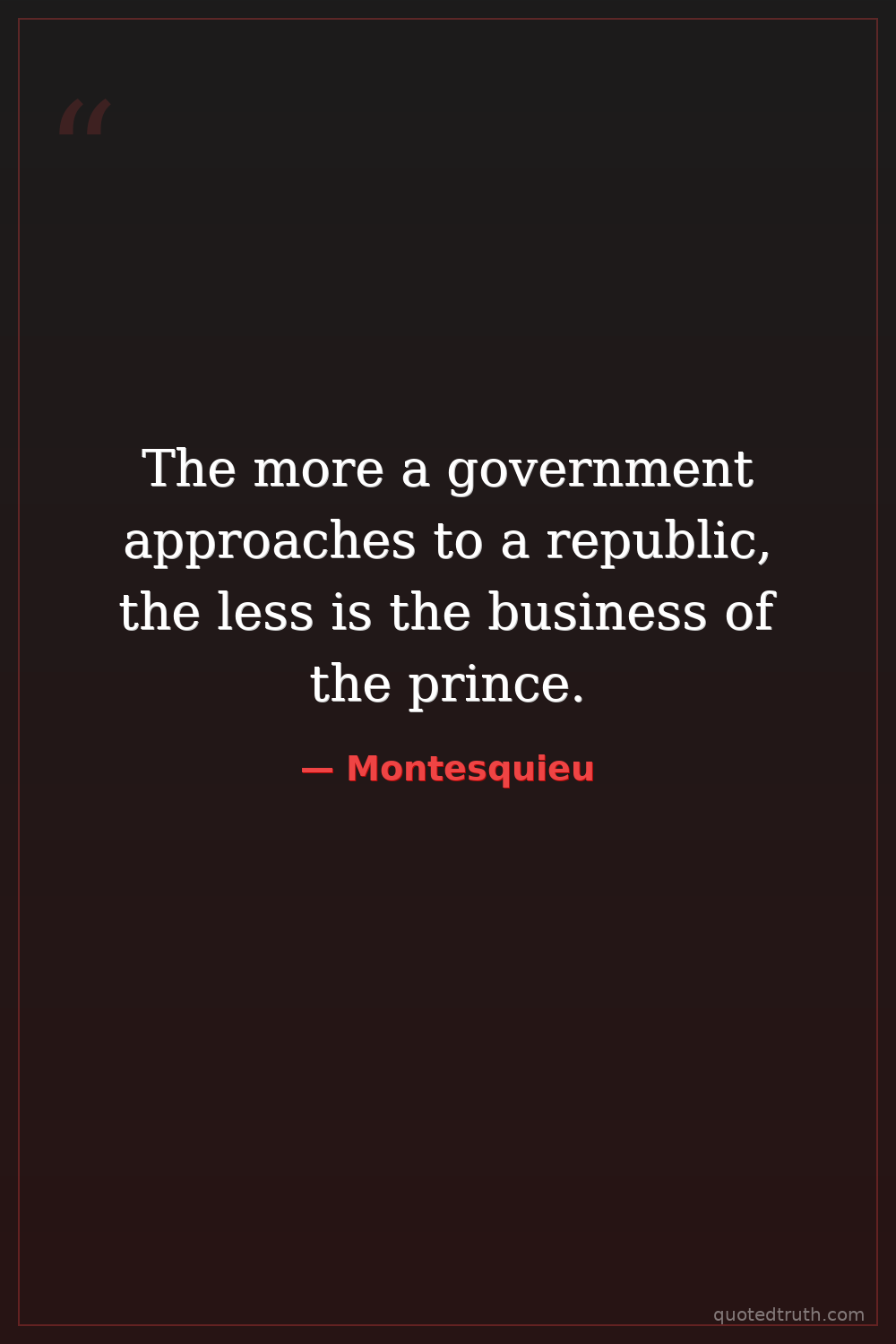 The more a government approaches to a republic, the less is the business of the prince.