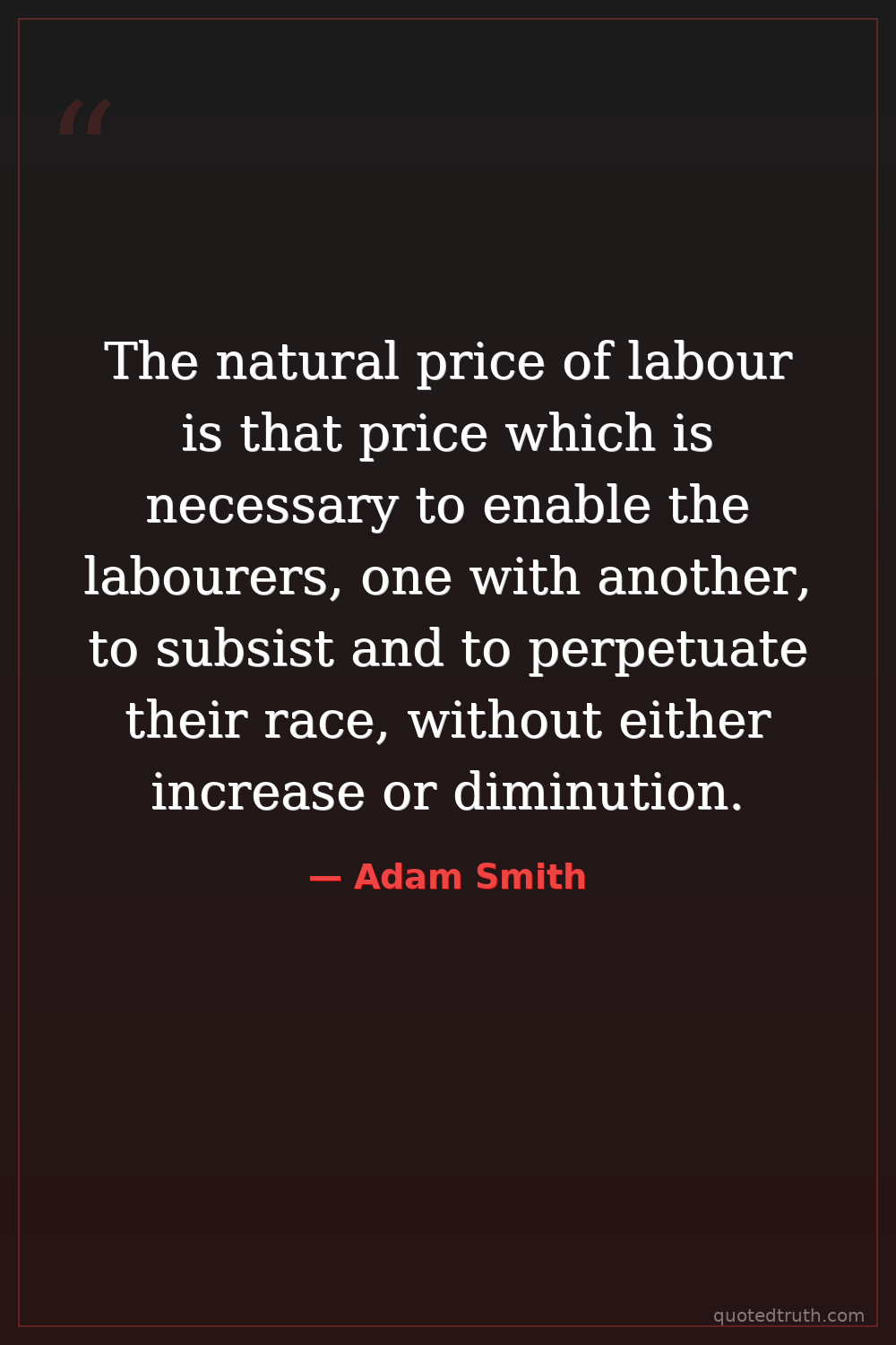The natural price of labour is that price which is necessary to enable the labourers, one with another, to subsist and to perpetuate their race, without either increase or diminution.