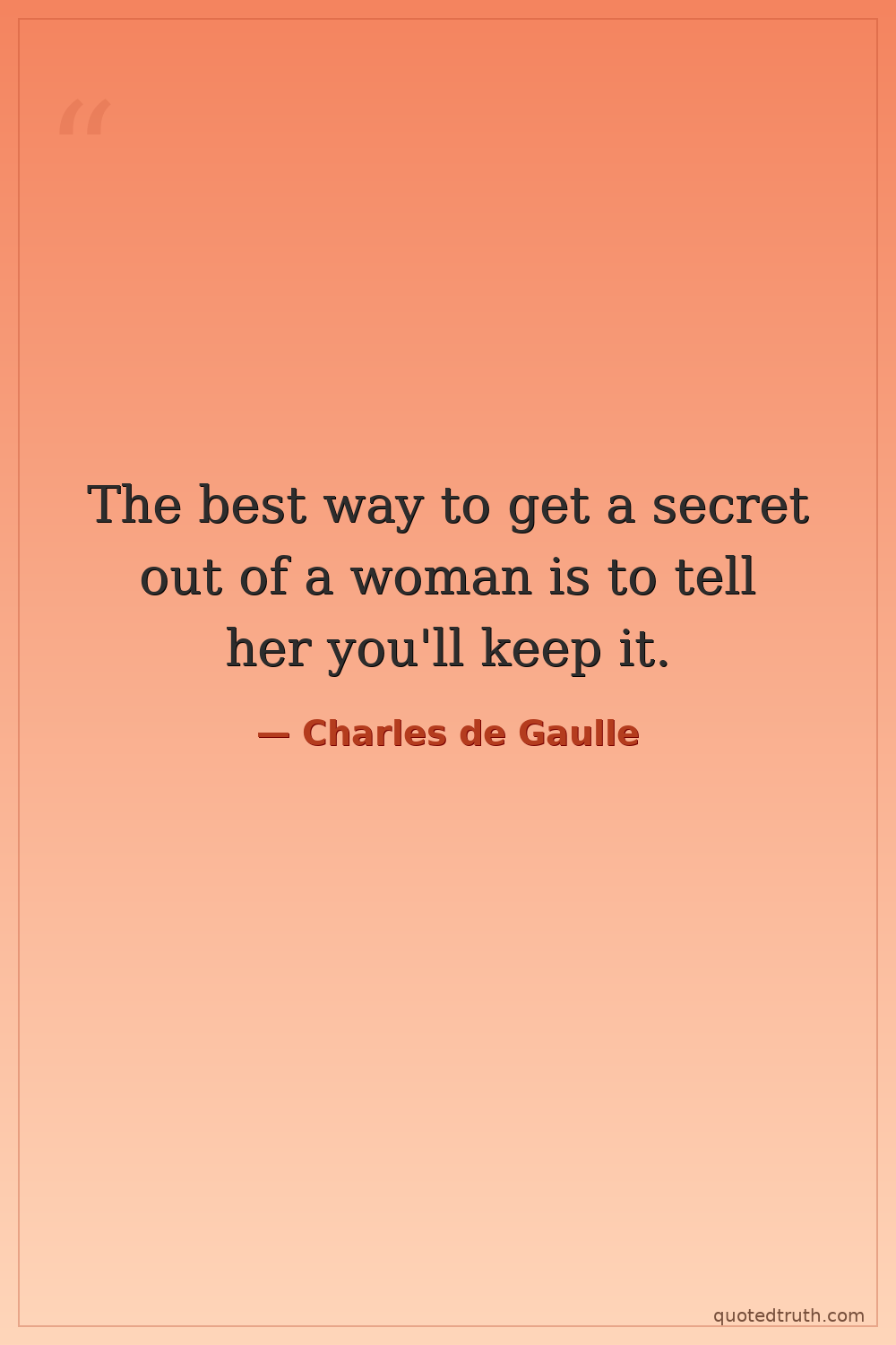 The best way to get a secret out of a woman is to tell her you'll keep it.